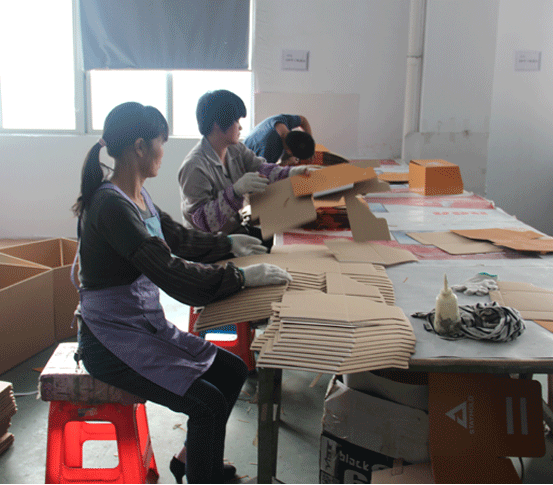 6.彩盒粘制/打釘:把彩盒按照樣板進行固定連接部位用膠水粘起來,或者根據(jù)樣板進行打釘。